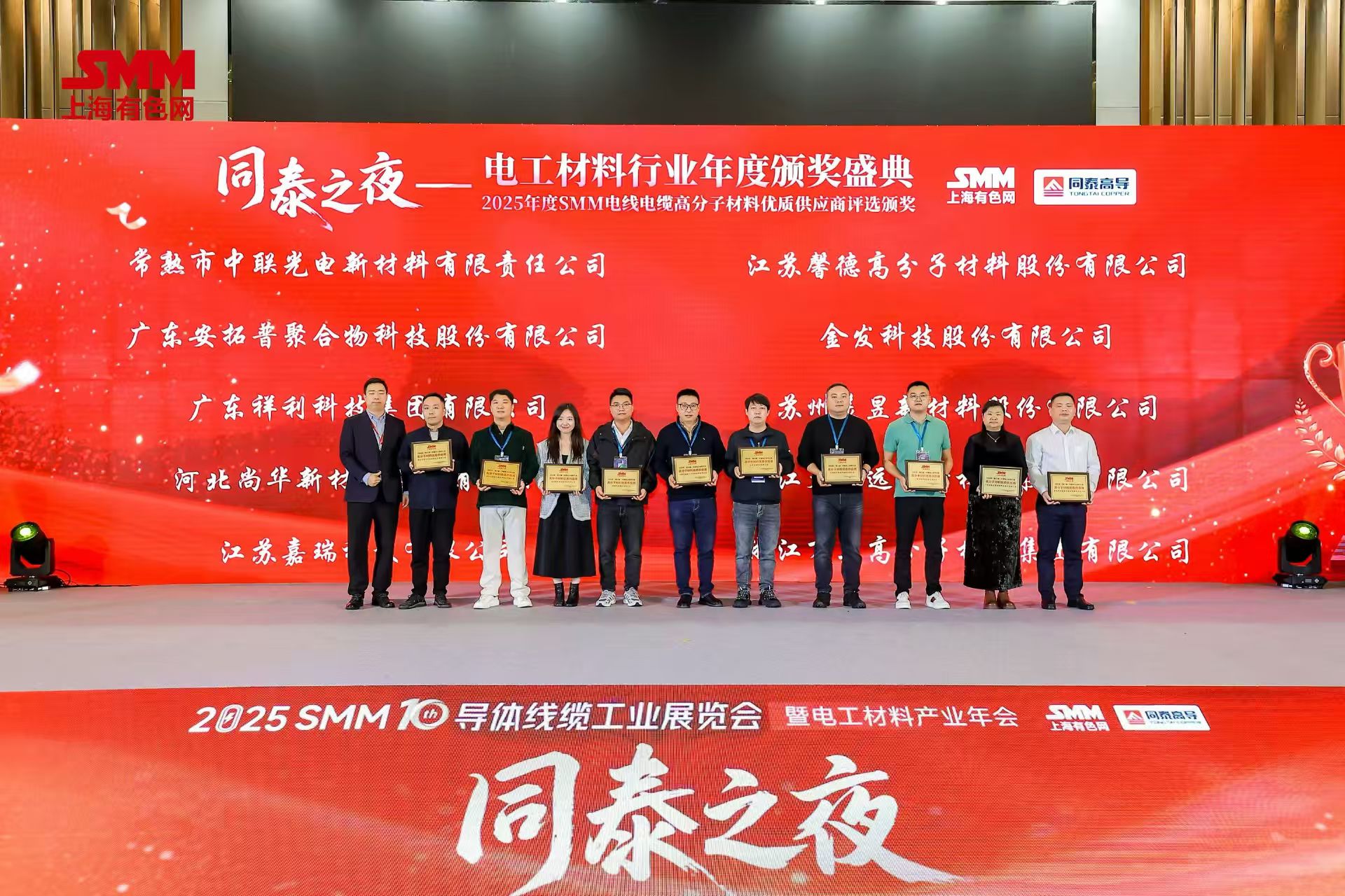 近日,在上海有色網(wǎng)(SMM)主辦的“2025(第十屆)導(dǎo)體線纜工業(yè)展覽會(huì)暨電工材料產(chǎn)業(yè)年會(huì)上,備受行業(yè)矚目的2025年(第六屆)SMM電工材料行業(yè)評(píng)選結(jié)果正式揭曉。常熟市中聯(lián)光電新材料有限責(zé)任公司憑借卓越的產(chǎn)品質(zhì)量、領(lǐng)先的技術(shù)實(shí)力與良好的市場(chǎng)口碑,在激烈的評(píng)選中脫穎而出,成功斬獲 “電線電纜高分子材料優(yōu)質(zhì)供應(yīng)商 這一重要獎(jiǎng)項(xiàng)。