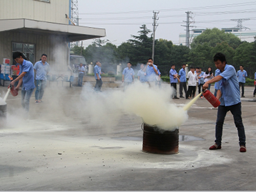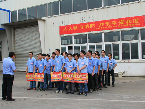 本次消防演練設(shè)消防安全工作基本常識培訓、火災(zāi)撲救消防器材技能培訓以及三公斤干粉滅火器油盆滅火比賽、團隊2人二檔消防栓出水比賽等四項議程。中聯(lián)高分子交聯(lián)部、高分子膠料部、金屬拉絲、金屬焊帶共30多名員工參加演練。
